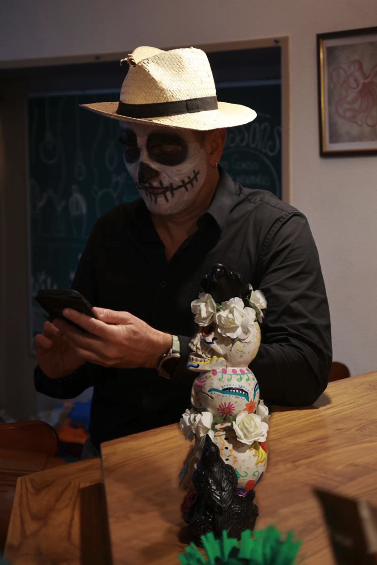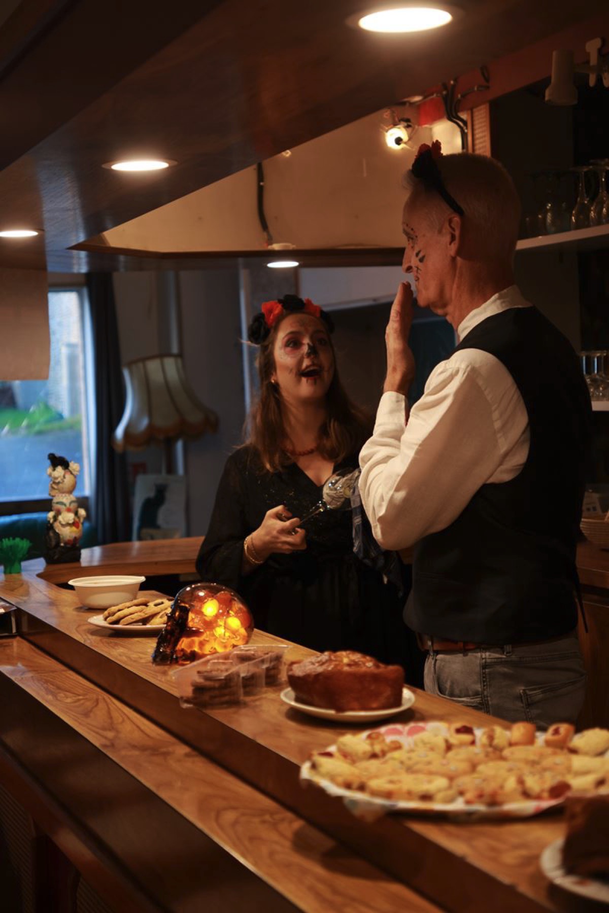 Depuis un an sous l’impulsion de quelques habitants de la commune souhaitant dynamiser la commune par des évènements festifs ou culturels, le bar d’en bas a réouvert ses portes sous la forme d’un café associatif. Il compte sur une vingtaine d’adhérents qui permettent aux habitants de se retrouver tous les samedis matin de 9h à 13h. En plus ponctuellement -généralement une fois par mois- une animation à thème est proposée, pour inviter les gens à venir passer un moment de partage et de convivialité. Ce samedi comme d’habitude, le café à ouvert de 9h à 13h avec une bonne affluence mais en plus en lien avec Halloween, les bénévoles proposaient une journée culturelle à la rencontre du Mexique. Du 31 novembre au 2 novembre, ce pays célèbre le Día de los Muertos (ndlr: jour des morts), une tradition mexicaine haute en couleurs, où les vivants célèbrent les disparus à travers la joie, la musique et le partage. Alors à 17h, la population était invitée à venir partager un goûter participatif, avec pour les enfants des coloriages sur le thème du jour afin de placer l’établissement dans l’esprit de cette fête traditionnelle.Les participants étaient invités à venir si possible, maquillés et costumés dans l’esprit du thème. Le Bar du Bas est resté ouvert toute la soirée sous le flot entrainant de la musique latino. Le 29 novembre il sera une nouvelle fois ouvert dès 19h, avec en soirée un blind test loufoque animé par Vernon Jojoba à partir de 20h30. Restauration possible sur place.