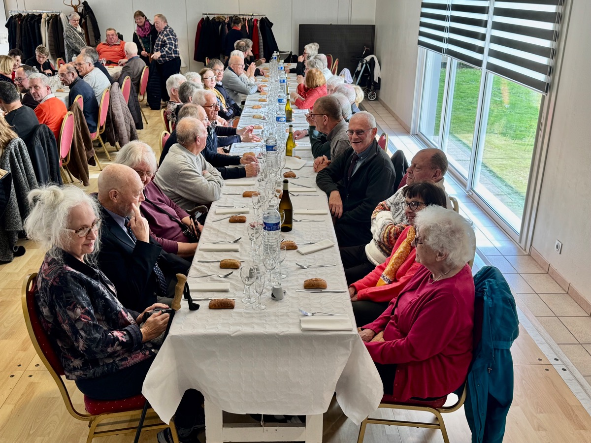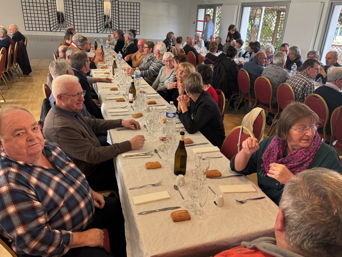 Le repas des aîné(e)s de la commune de Missiriac s’est déroulé ce mardi 11 novembre au restaurant le Relais du Maquis à Saint-Marcel. Et ils étaient 98 à avoir fait le déplacement, à l’invitation du CCAS, après la traditionnelle cérémonie commémorative de l’Armistice de 1918 célébrée au monument aux morts de Missiriac. Une fréquentation en hausse par rapport aux années précédentes. « Ce repas constitue une vraie sortie pour nos ancien(ne)s qui leur permet le temps d’une journée, de quitter leur environnement habituel », souligne Christelle Marcy, la maire de Missiriac. Après le repas, l’après-midi s’est poursuivie dans une ambiance très conviviale, agrémentée par des animations « faites maison ». La commune de Missiriac compte parmi ses habitants de nombreux conteurs et chanteurs qui ont pu exercer pleinement leur talent et faire de cette journée un moment mémorable. Parmi les convives, on notait la présence de Odette Goujout, 99 ans et de Jean Thomas, 87 ans, respectivement doyenne et doyen de la journée.