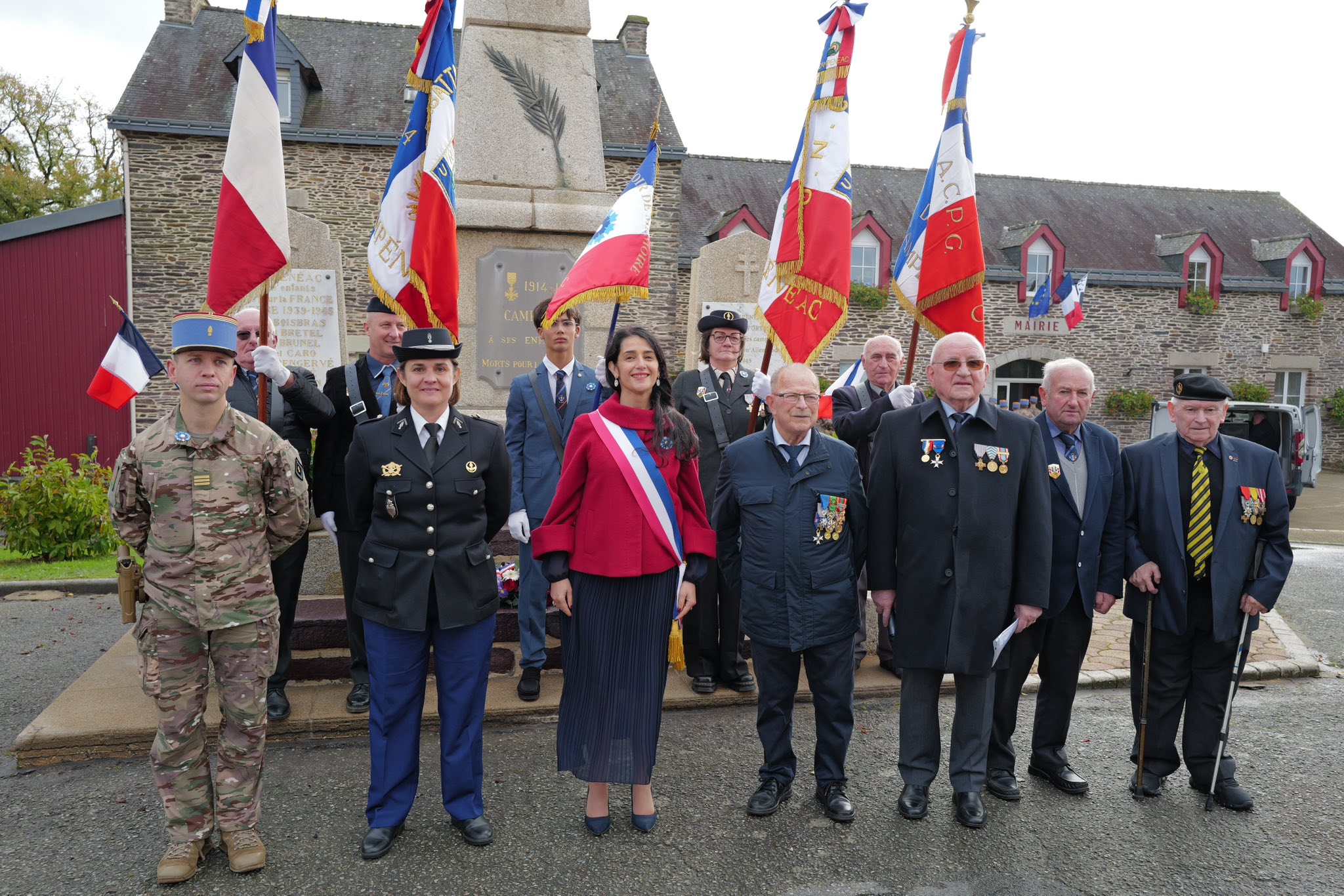 La matinée a débuté à 10 h 30 par un dépôt de gerbe à la Croix de Belleville, avant un second hommage à 11 h 15 devant le monument aux morts, place de la Mairie. Autour des élus municipaux, plusieurs délégations avaient fait le déplacement :