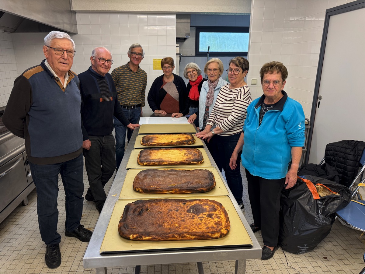 A quelques kilomètres de là, depuis 8 heures du matin une autre équupe s’active aux fourneaux de la salle du Bois Vert avec un objectif : confectionner 40 plaques de far breton avant la fin de la journée. Les chiffres donnent le vertige : 80 litres de lait, 80 oeufs, 720 parts… Mais il en faut plus pour impressionner la fine équipe. Depuis le début du cyclo-cross, ils accomplissent cette mission sans faillir. « Une année, on en a fait un millier… », se souvient l’une d’entre elles. A 15 h 30, la dernière fournée finissait de cuire. Rendez-vous samedi et dimanche pour un autre défi : prépare 2000 galettes directement sur le site pour nourrir les spectateurs.