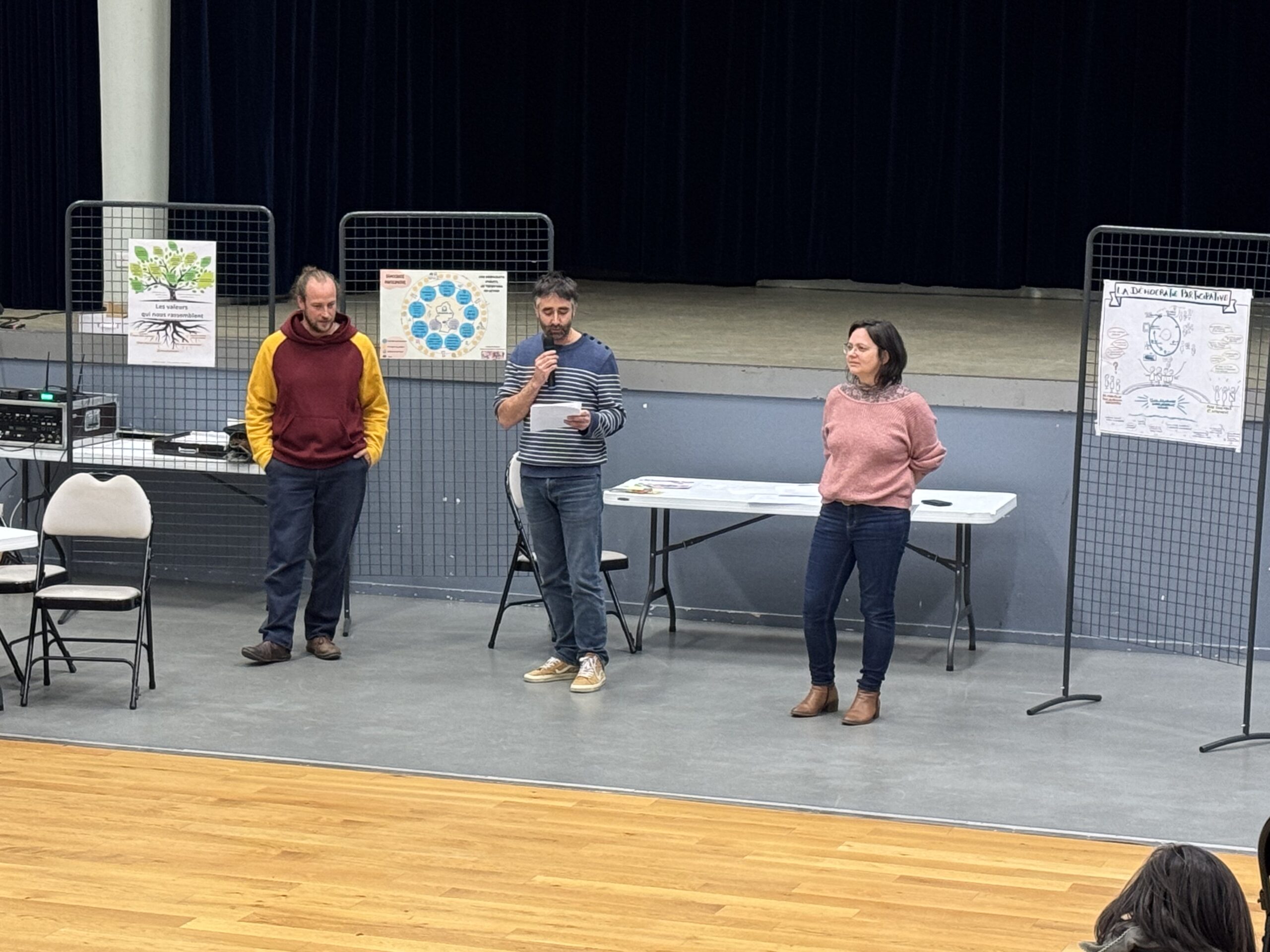 Les représentants du collectif ont d’abord expliqué en détails le sens de leur démarche et plus généralement développé le concept de démocratie citoyenne sur lequel ils articulent leur campagne et qu’ils nous ont présenté il y a quelques jours (lire en cliquant ici). En quelques mots, il s’agit « d’inverser la pyramide » pour que les projets municipaux soient proposés et travaillés par les citoyens avant d’être soumis au vote du conseil municipal et non pas l’inverse. Le collectif composé d’une trentaine de personnes travaille sur le sujet depuis des mois avec comme modèle la commune de Plessé en Loire Atlantique qui fonctionne sur ce modèle.