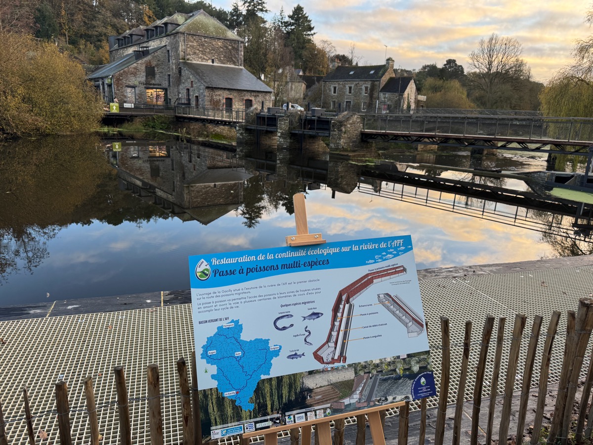 En parallèle de l’éco-quartier, la commune a également inauguré la nouvelle passe à poissons du Moulin de La Gacilly, un ouvrage majeur pour la biodiversité aquatique du bassin de l’Aff, rattaché au bassin de la Vilaine.