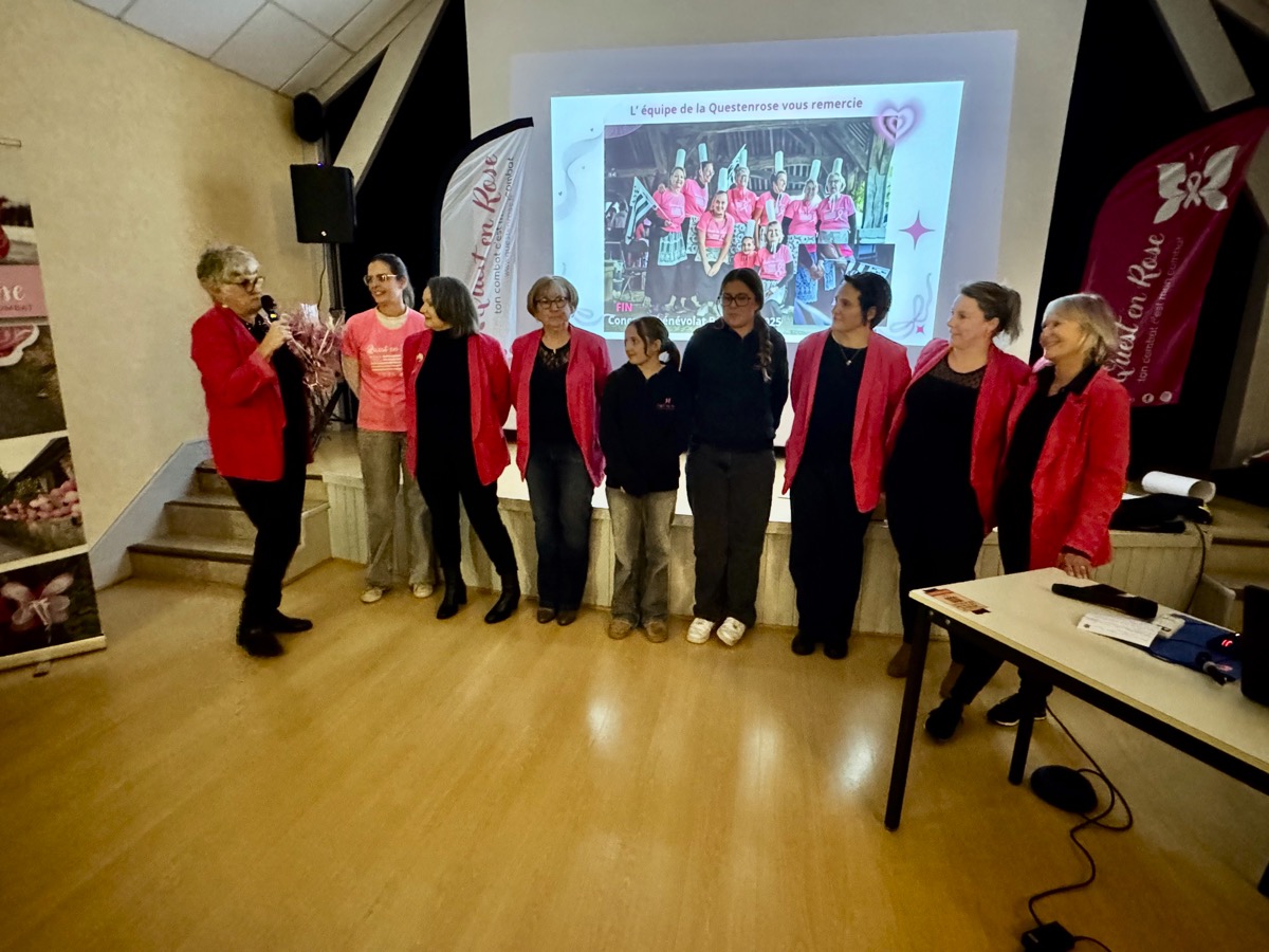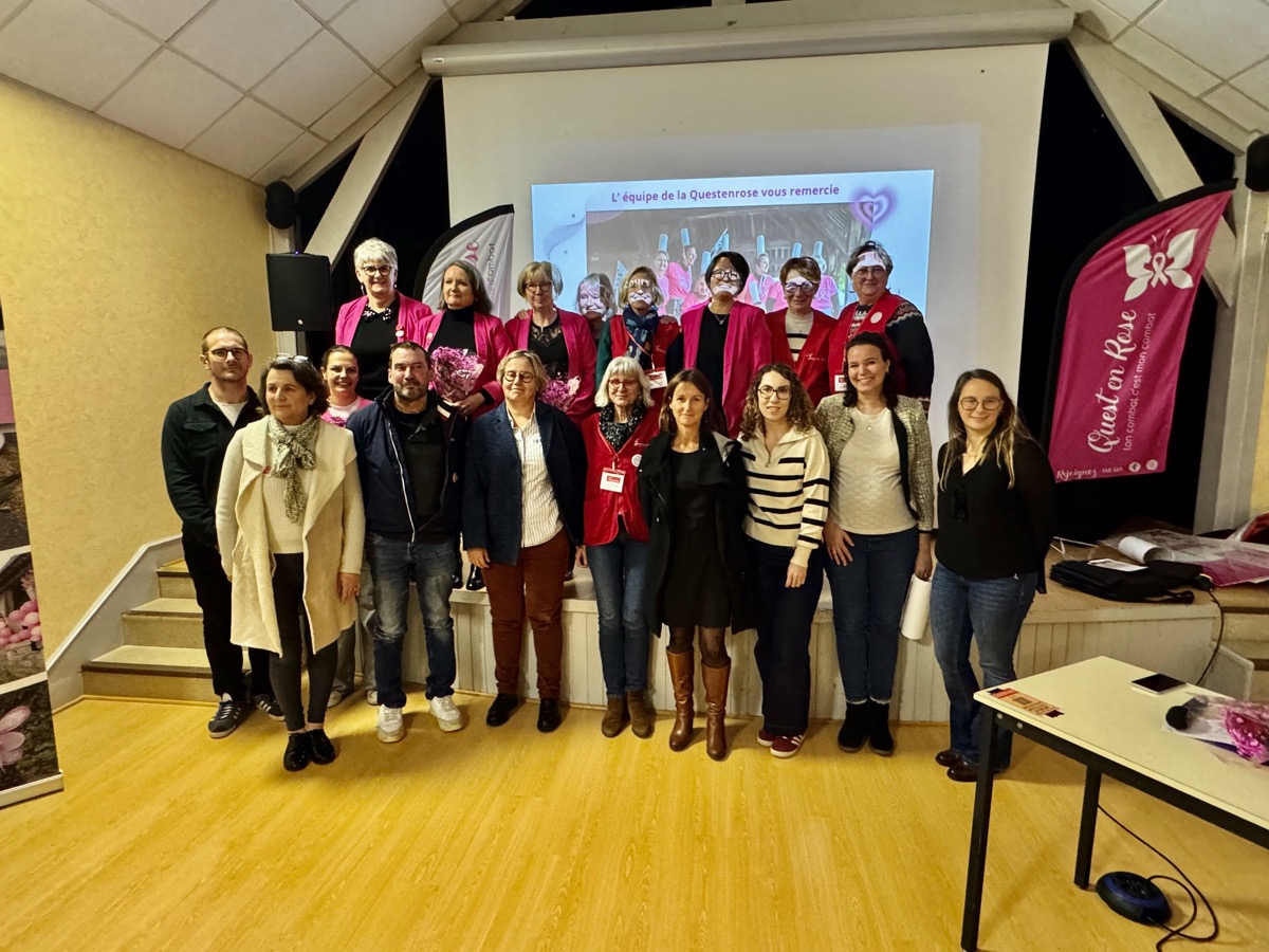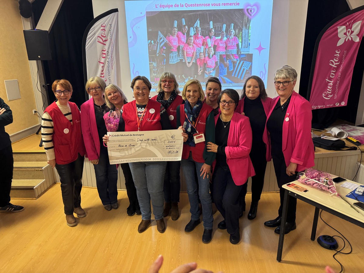 Avec 2744 participants, la marche course contre le cancer du sein, la Quest en rose a établi un nouveau record de participation mais aussi la plus importante collecte de son histoire. Ce vendredi soir, la Quest en rose a pu redistribuer la somme exceptionnelle de 50 000 euros à 6 associations luttant contre le cancer ou aidant les malades. L’occasion pour Jacqueline Angerman la co-présidente de l’association de retracer l’extraordinaire évolution de cette marche-course solidaire qui avait collecté 7000 euros en 2017 pour sa 1ère édition. En 8 ans, elle a ainsi rassemblé 225 000 euros qui ont contribué à la lutte contre le cancer du sein. Vendredi soir, Rêves de clown a reçu 2000 euros, le centre d’oncologie Saint-Yves 3200 euros, AOVA de l’hôpital de Vannes, 3500 euros, la Ligue contre le cancer 5000 euros, Inove Océane, 5000 euros, le centre Eugène Marquis 10 000 euros et les soins supports de la Questenrose, 21 300 euros.