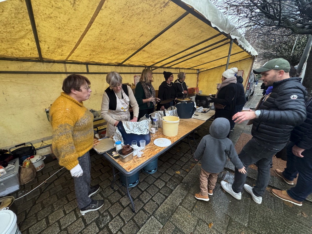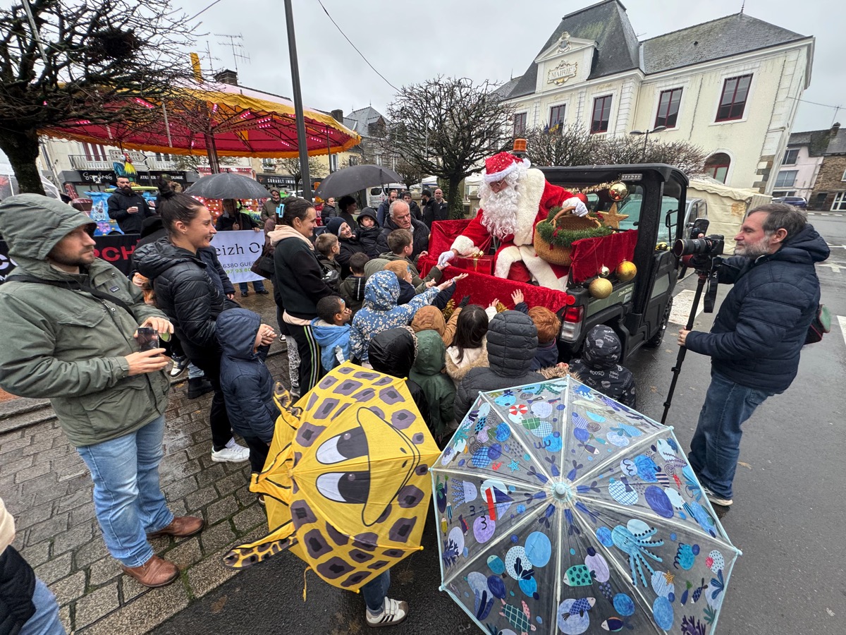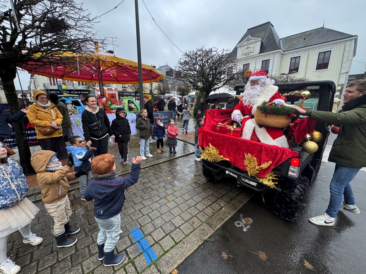 Sacré Père Noël! De la pluie, du vent… rien ne l’arrête. Il avait promis d’être sur la place de la mairie de Guer à 16 heures pour distribuer des bonbons aux enfants à l’occasion de la fin de la quinzaine commerciale organisée par les commerçants de l’UGC. Et il était là, à l’heure dite, faisant une arrivée remarquée, installé dans le coffre d’un véhicule, dans lequel son fauteuil avait été installé par les commerçants. Inutile de dire qu’il a reçu un accueil triomphal de la part des enfants qui, eux non plus, ne se sont pas laissés impressionner par la météo peu engageante. Sympa, le Père Noël a même proposé aux enfants de faire un tour de quartier en sa compagnie, à bord de son véhicule… Des enfants qui pouvaient se faire maquiller. Tout au long de l’après-midi, Maxxlemagicien a connu un vif succès avec ses tours de magie très réussis. Mais l’attraction phare de cette dernière journée de quinzaine commerciale reste la dégustation d’huîtres devenu un rendez-vous incontournable par son côté festif et convivial qui ne cesse d’attirer toujours plus d’amateurs. D’ailleurs, ce dimanche les commerçants de l’UGC ont écoulé la totalité de leur stock: 330 huîtres ont ainsi été consommées. Pour combler les appétits les plus aiguisés, il y avait aussi des galettes et des crêpes, bref de quoi résister aux rigueurs de l’hiver…