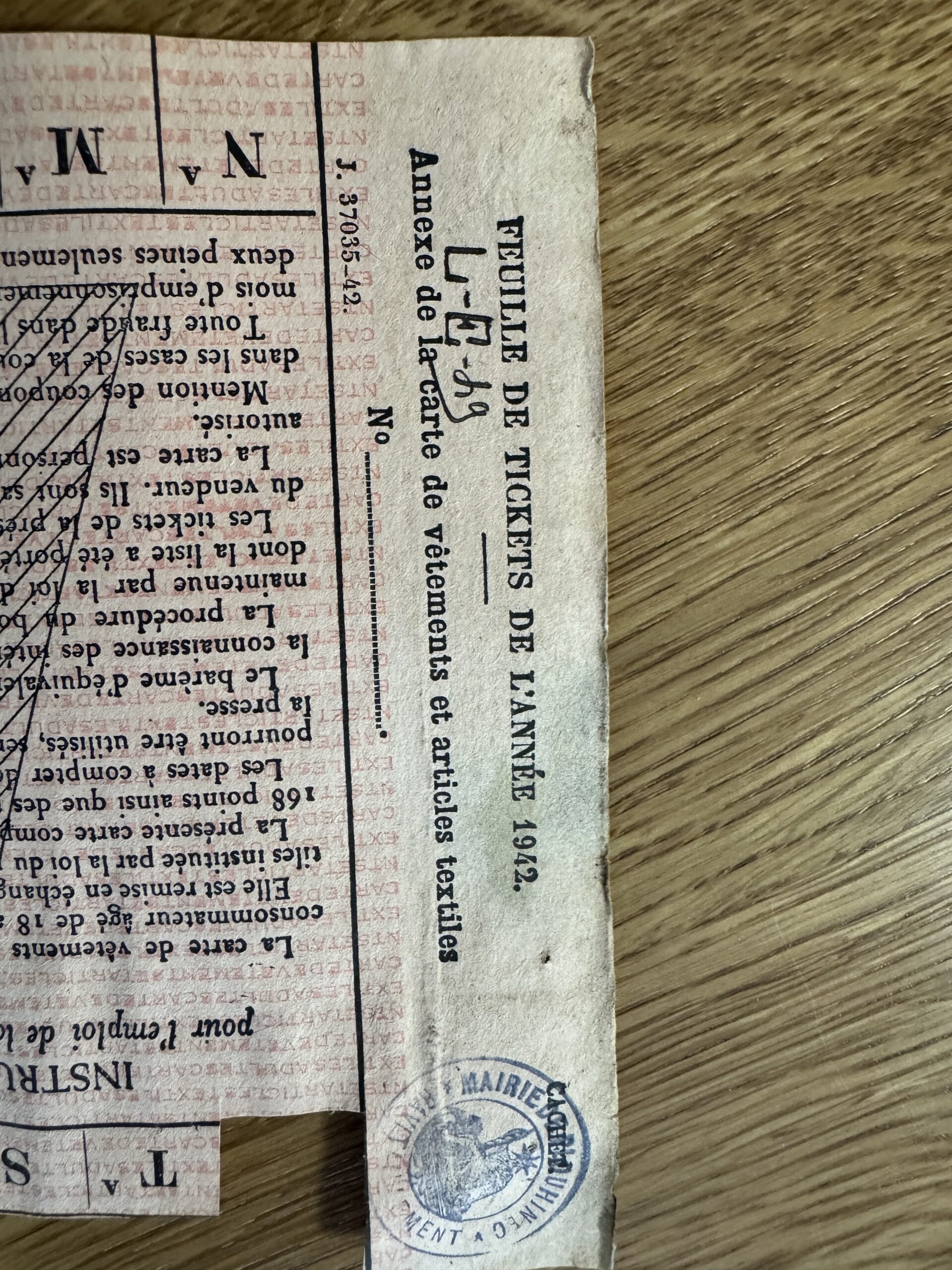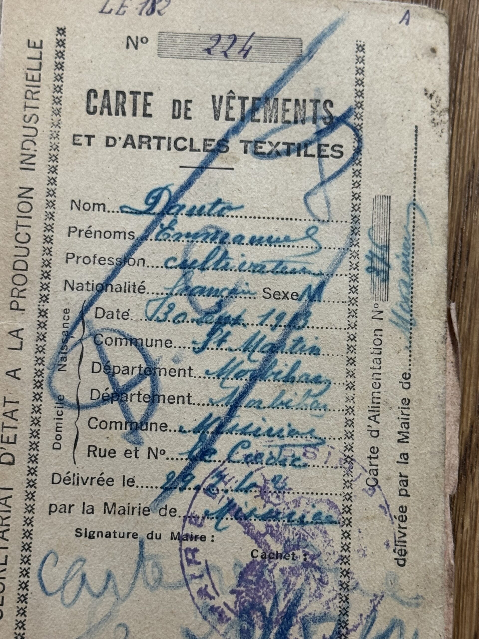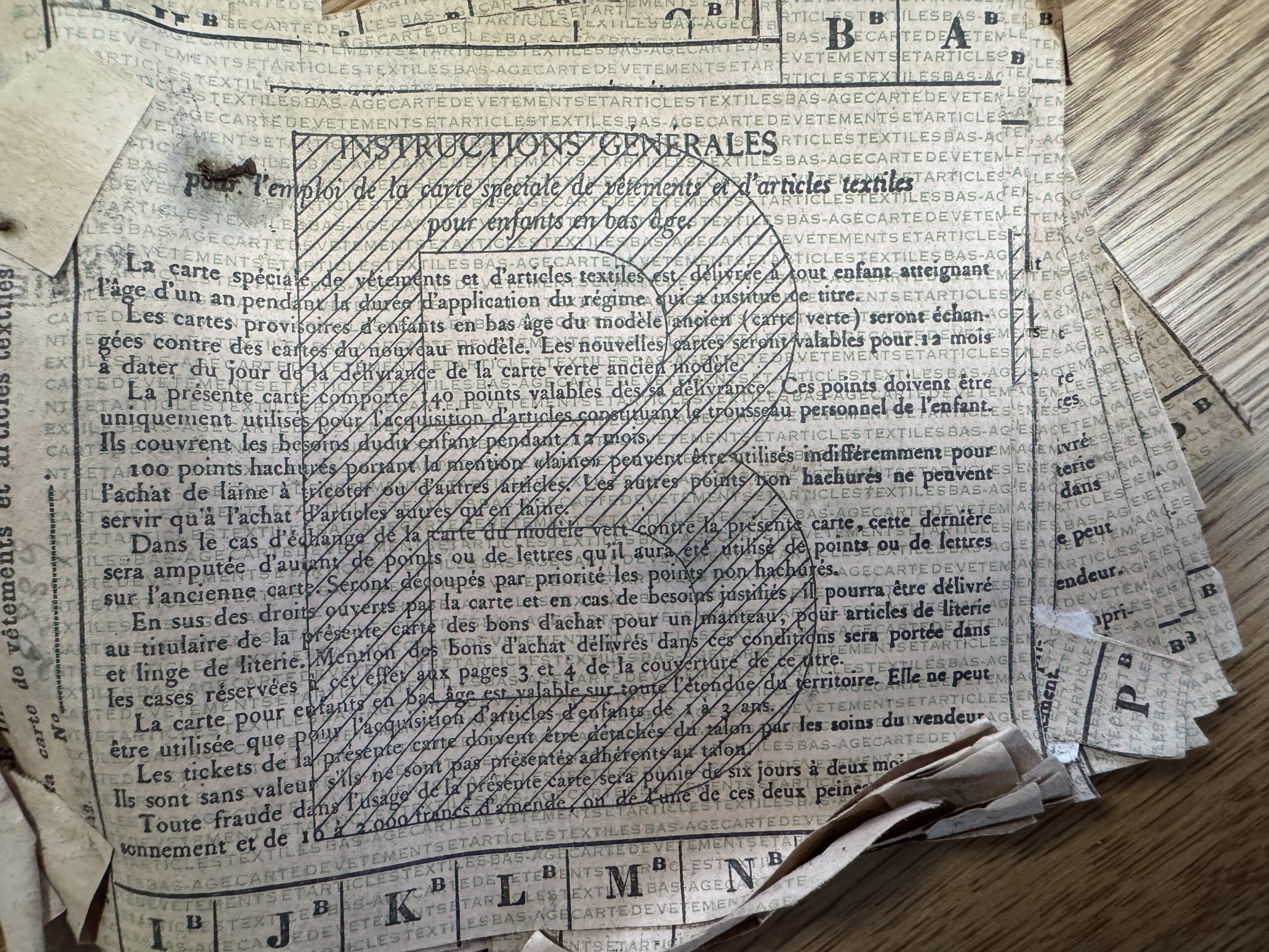 C’est une découverte étonnante et très émouvante qu’ont fait les artisans travaillant à la réfection de la charpente de la mairie de Malestroit en cours de restauration. Cachés dans un recoin de la charpente, ils ont découvert des cartes et des dizaines de tickets de rationnement vestimentaires, datant de 1942/1943. Certains de ces tickets étaient renfermés dans une enveloppe portant le cachet de la préfecture. Une autre portait l’adresse du maire de l’époque, Edmond Besson. Il s’agissait de l’adresse personnelle du maire, la kommandantur étant installée dans la mairie. La plupart des cartes portent le sigle « DCD », laissant penser qu’elles se rapportaient à des personnes décédées. Certaines concernent des personnes domiciliées dans tout le département.