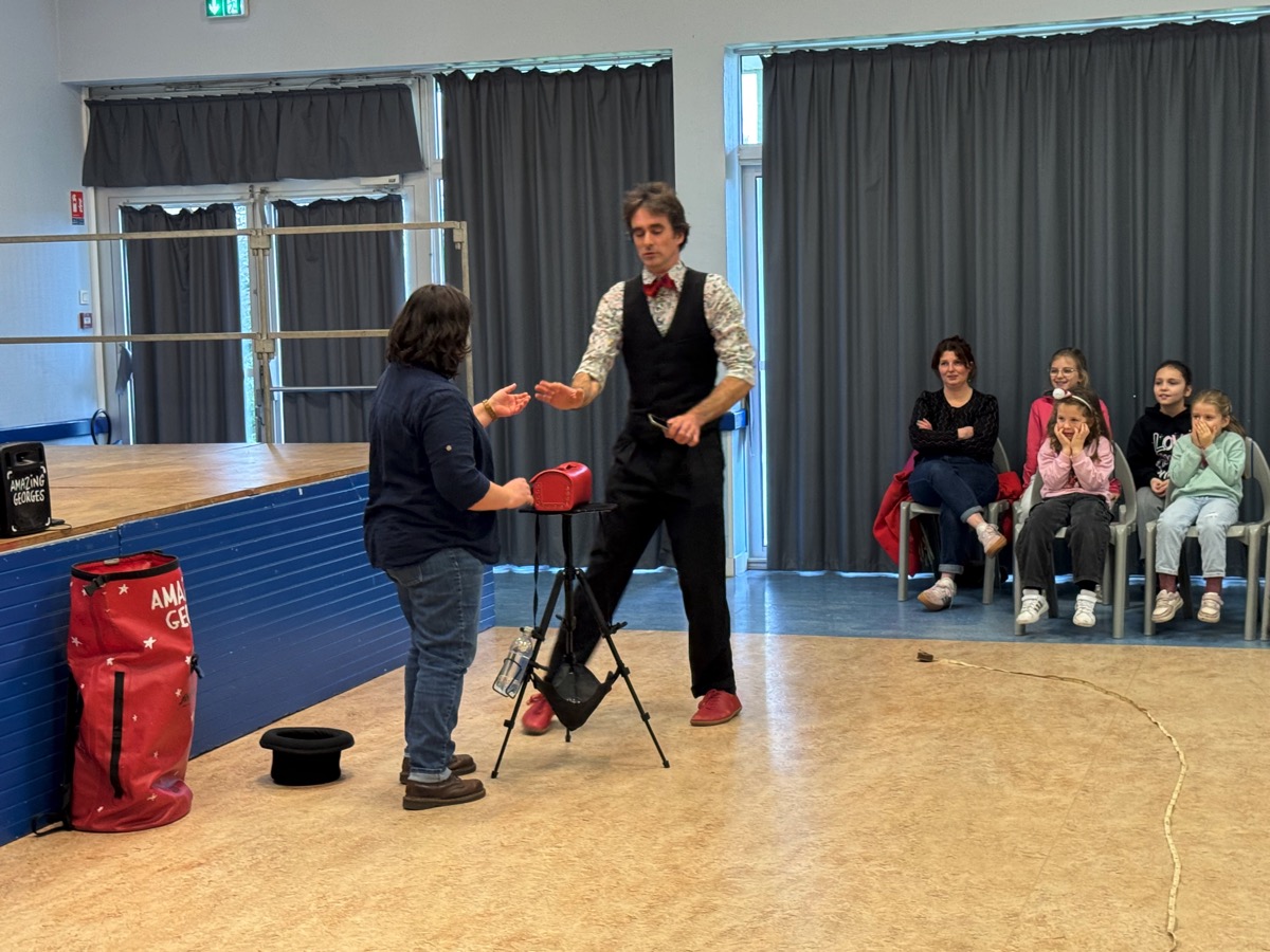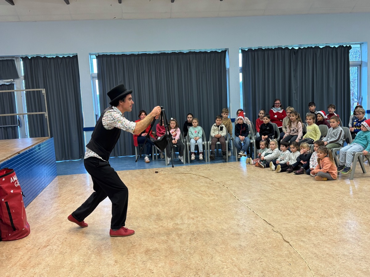 Noël approche. Un moment magique pour les enfants. Et c’est le talentueux magicien Amazing Georges qui a fait rêver les écoliers de Caro ce vendredi matin. Les élèves des deux écoles -l’école publique Le Pré Vert et l’école privée Saint-Hervé- étaient rassemblés à la salle polyvalente de la commune pour assister à ce spectacle offert par la mairie et organisé par la bibliothèque municipale. Amazing Georges propose un spectacle en solo, sans parole, très drôle et interactif, truffé de gags et de tours de magie bluffants qui permettent à l’artiste d’entrainer ses spectateurs dans son univers de de leur faire oublier pendant quelques minutes leurs tracas quotidiens. Les habitants du territoire le connaissent bien pour l’avoir applaudi dans plusieurs animations locales et notamment à Malestroit, mais il a aussi été primé à plusieurs reprises à l’international.