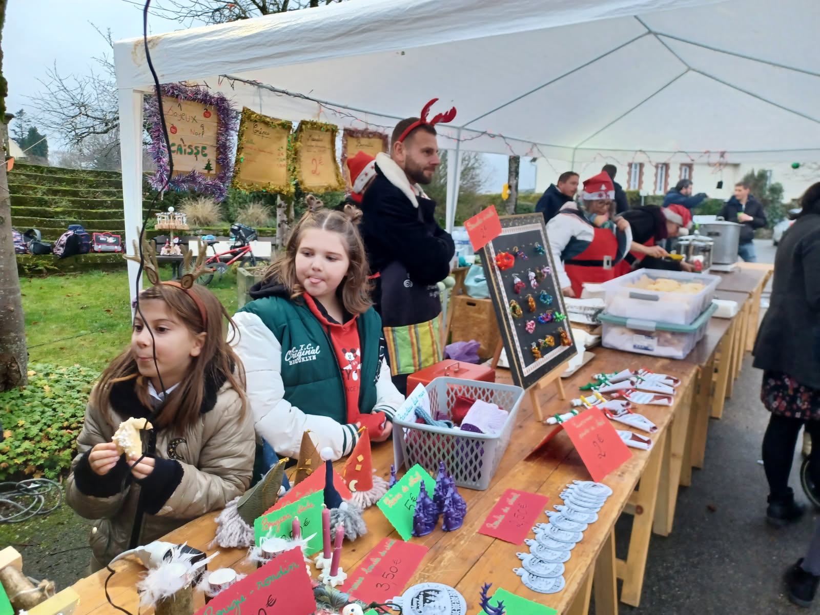 Comme chaque année, les élèves des deux écoles de Caro -l’école publique le Pré Vert et l’école privé Saint-Hervé- ont ouvert le marché de Noël en interprétant plusieurs chants répétés dans leurs classes. Les parents étaient là mais aussi des visiteurs venus faire leurs emplettes de Noël au hasard des stands. Et celui des écoliers a drôlement attiré l’oeil des badauds avec ses « manalas », -célèbre spécialité pâtissière de l’est de la France que l’on déguste pour la Saint-Nicolas- le jus de pomme de Noël, le vin chaud, les crêpes mais aussi une multitude d’objets décoratifs inspirés de Noël et tout ça entièrement fabriqués par les enfants, les parents, l’équipe pédagogique avec pour objectif de financer les sorties scolaires…
