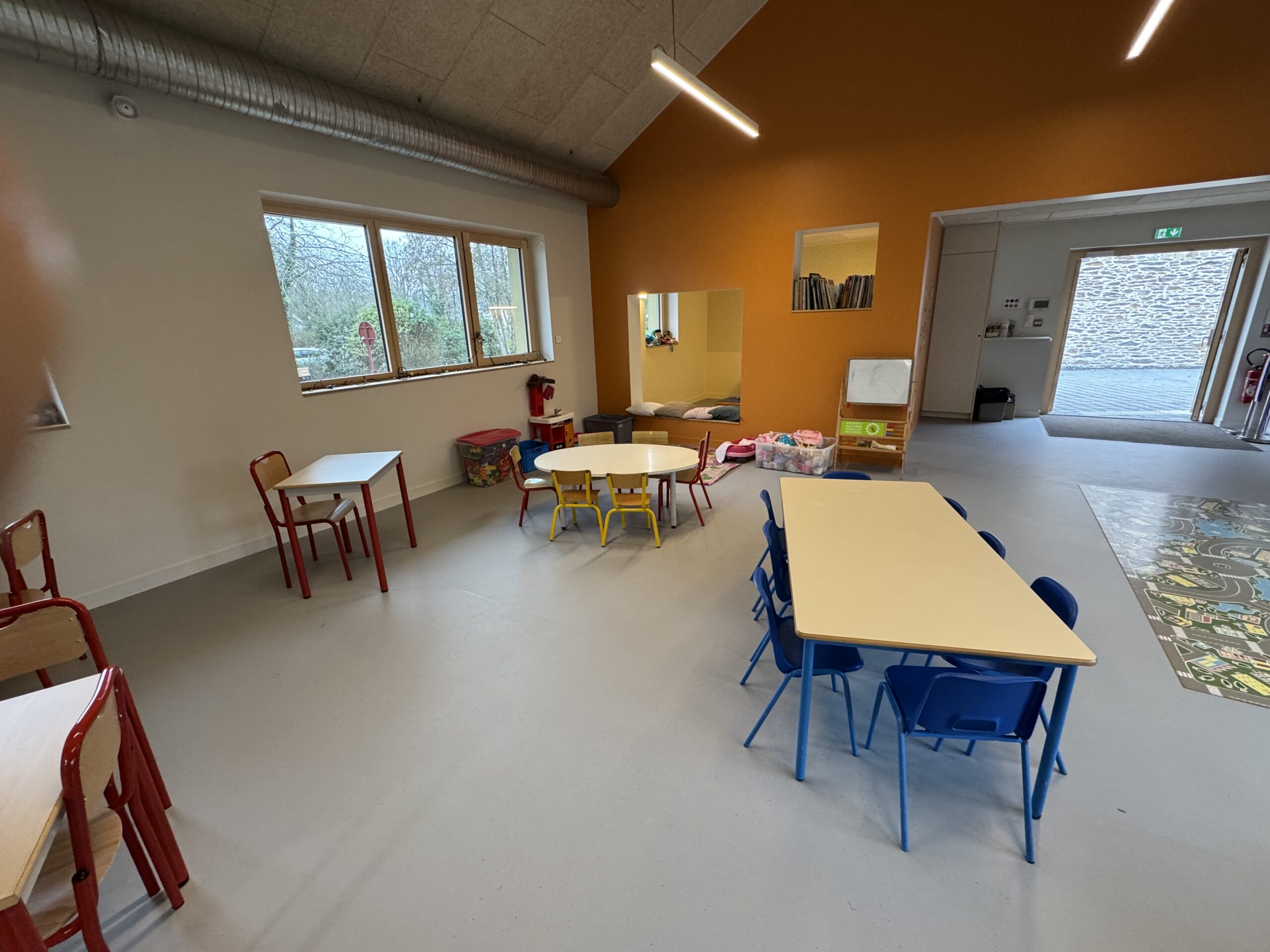 D’une surface de 250 m², le bâtiment a été réalisé en matériaux biosourcés, dans une logique d’éco-construction. Il allie fonctionnalité, convivialité et respect de l’environnement. Son accès direct à la cour de l’école Sainte-Thérèse et sa proximité avec un grand parking garantissent un espace pratique et sécurisé pour les familles.