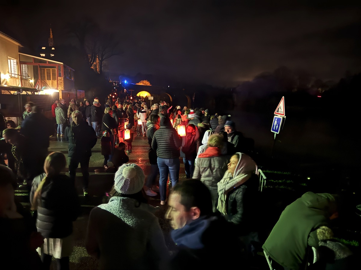La foule impressionnante s’est alors rassemblée, lampions à la main pour partir en cortège jusqu’au canal où chocolat et vin chaud attendaient les participants, histoire de patienter en attendant le feu d’artifice. Pour l’occasion des centaines de badauds étaient également massés sur le pont.