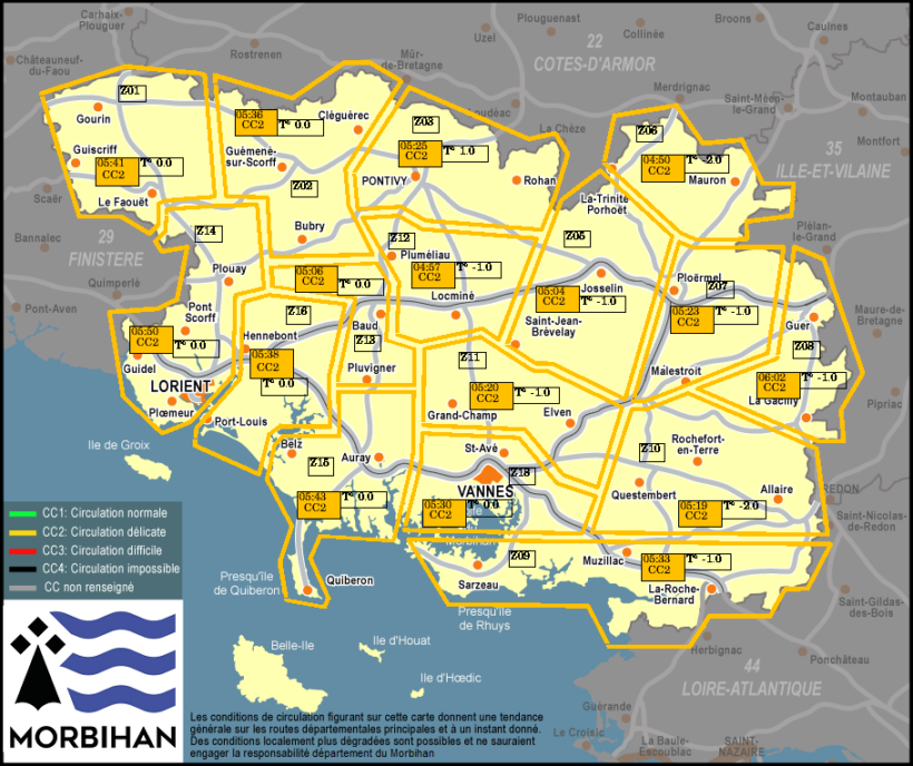 Accueil / Thématiques / Vos conditions de circulation / Morbihan. Chute de neige : la carte de l’état des routes à 6 h 30