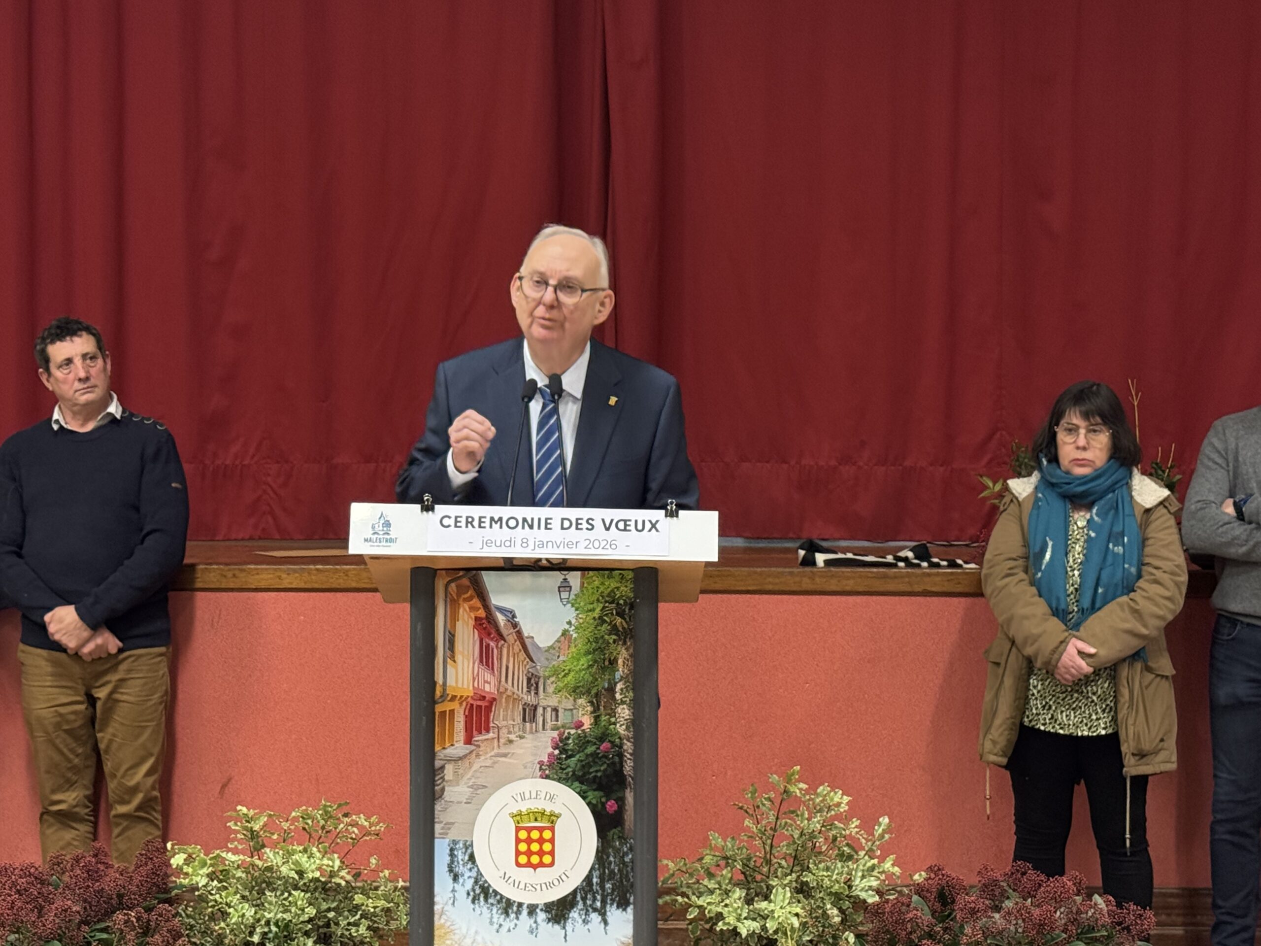 Revivez en intégralité la cérémonie des voeux du maire de Malestroit, Bruno Gicquello qui s’est déroulée à la salle des fêtes ce jeudi soir. Il s’agit de la dernière cérémonie des voeux de la mandature actuelle. Bruno Gicquello n’a toujours pas fait part de ses intentions pour les prochaines élections municipales. Il a évoqué le sujet en expliquant que cette soirée n’est pas une tribune politique mais plutôt « un moment de concorde entre toutes et tous ». Il a juste laissé filtrer qu’avec son équipe il s’exprimera prochainement sur le sujet…