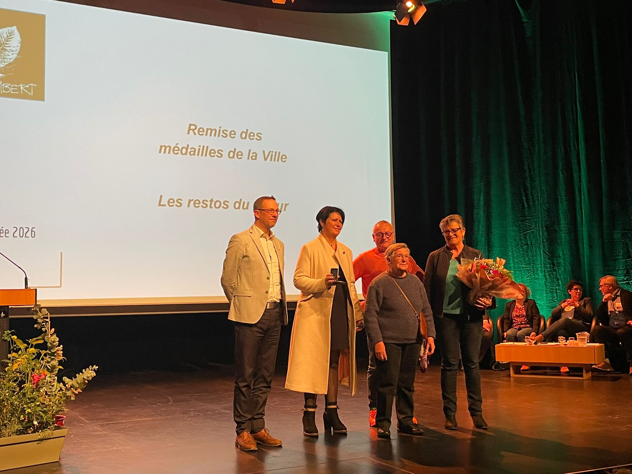 La cérémonie s’est poursuivie avec les interventions de Patrice Le Penhuizic, président de Questembert Communauté, de Marie Le Boterff, conseillère départementale, et de Régine Le Viavant, suppléante du député Paul Molac, avant la remise d’une médaille de la Ville aux Restos du Cœur.