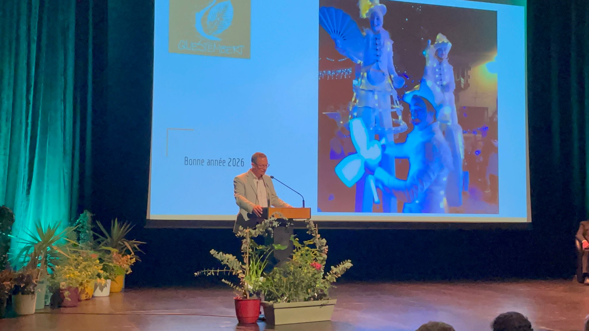 Dans son discours, le maire a dressé un état des lieux du contexte géopolitique et économique actuel, rappelant que « nous vivons ces spasmes du monde au quotidien », tout en soulignant la capacité du territoire à innover et à faire preuve de solidarité. Il a présenté un bilan économique jugé sain, avec une capacité d’autofinancement nette supérieure à 1,5 million d’euros et un endettement en baisse, inférieur à la moyenne nationale des communes de la strate de Questembert.
