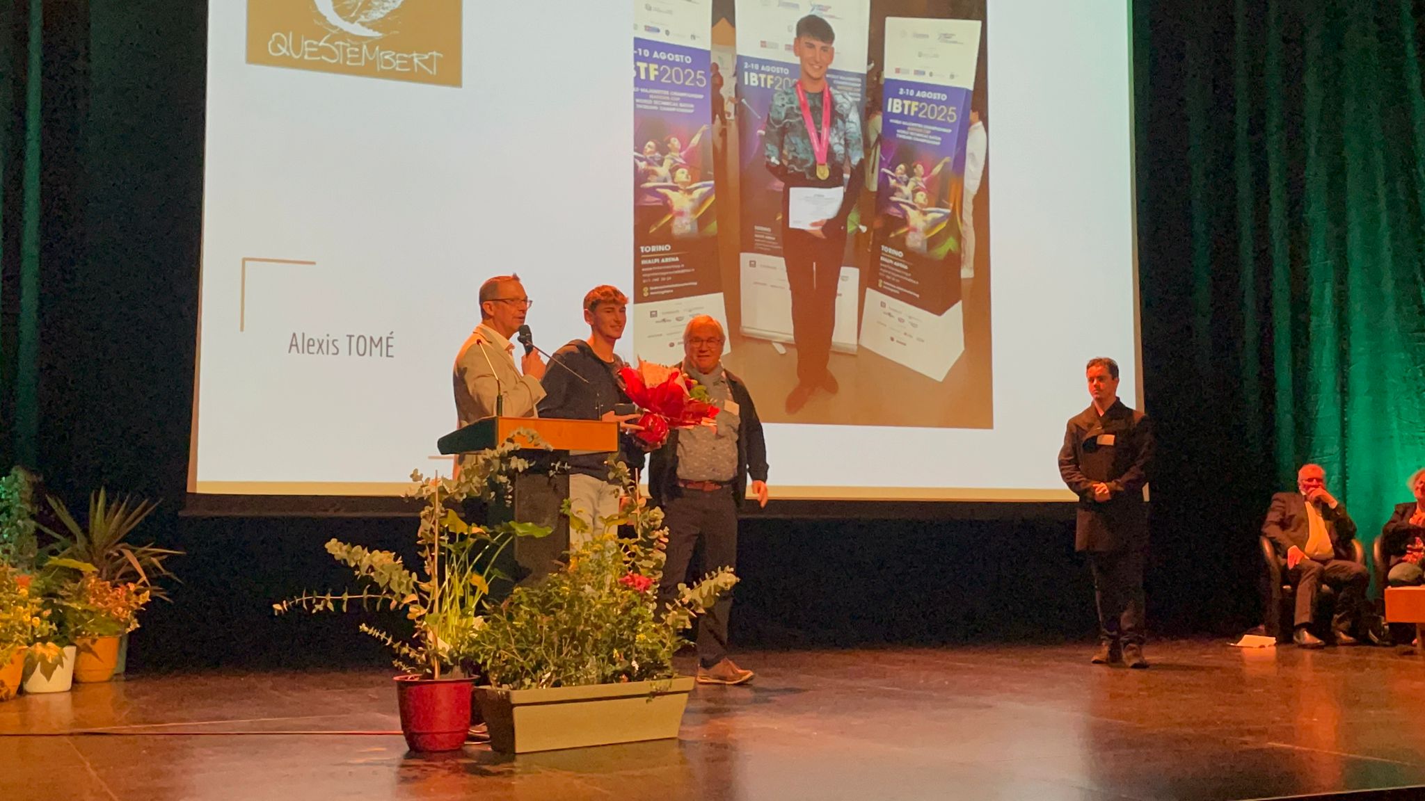 Ce samedi 10 janvier, la municipalité de Questembert a convié les habitants à la traditionnelle cérémonie des vœux. A 10 heures Boris Le Maire, maire de Questembert, a ouvert la cérémonie par la remise de plusieurs médailles de la Ville, récompensant la jeunesse. Une distinction a ainsi mis à l’honneur Alexis Tomé pour sa réussite sportive en twirling. Une seconde médaille a été attribuée à Léa Sibiril et Donovan Despeaux, élèves du lycée Marcelin-Berthelot, pour leur action solidaire menée au profit d’une camarade victime d’un incendie.