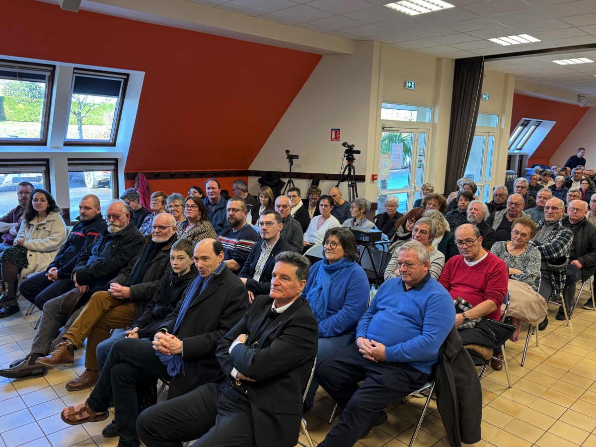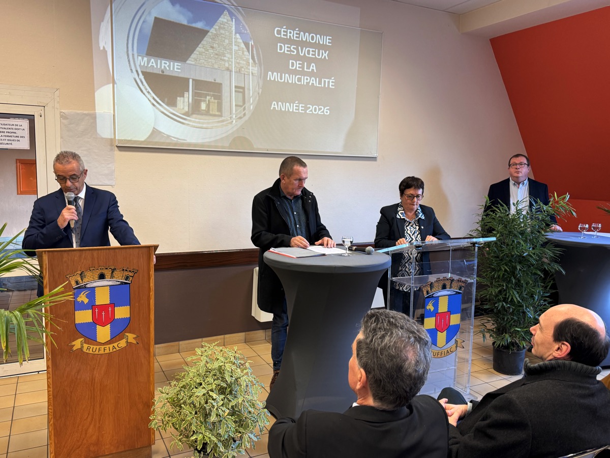 La salle polyvalente de Ruffiac affichait complet ce samedi matin pour la traditionnelle cérémonie des voeux du maire, Thierry Gué que vous pouvez revivre en intégralité dans notre vidéo. Observant la sobriété de rigueur en cette période pré-électorale, le maire, a néanmoins passé en revue les temps forts de l’année 2025 pour la commune avec le renfort de ses adjoints dans leurs domaines de prédilection: social, travaux et finances. Dans son intervention Thierry Gué a confirmé la bonne santé financière de la commune, fustigeant au passage la dérive des comptes de l’Etat et ses conséquences pour la gestion des collectivités locales. Il a regretté l’absence d’un médecin généraliste, laissant planer toutefois un espoir de solution. La commune dispose cependant d’une offre médicale importante avec notamment une jeune dentiste installée au pôle médicale. A cela s’ajoute un tissu commercial dynamique et le maire a notamment présenté les repreneurs du magasin Proxi qui devrait ouvrir d’ici l’été et annoncé l’installation d’une esthéticienne. Ajouté à de nombreuses associations, ce contexte explique l’attractivité de la commune dont la population augmente depuis plusieurs années pour atteindre 1451 habitants. Thierry Gué a confirmé qu’il sera candidat à sa succession lors des prochaines élections municipales de mars 2026.