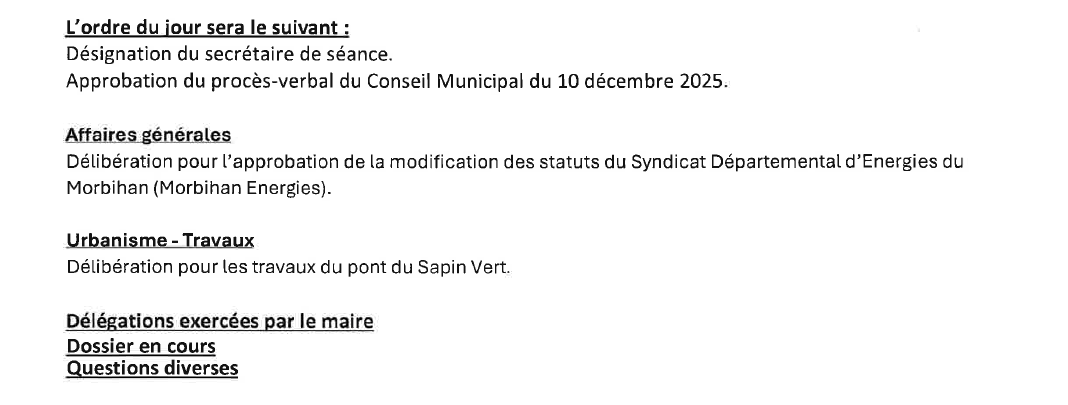 Accueil / Oust à Brocéliande / Augan. L’ordre du jour du conseil municipal