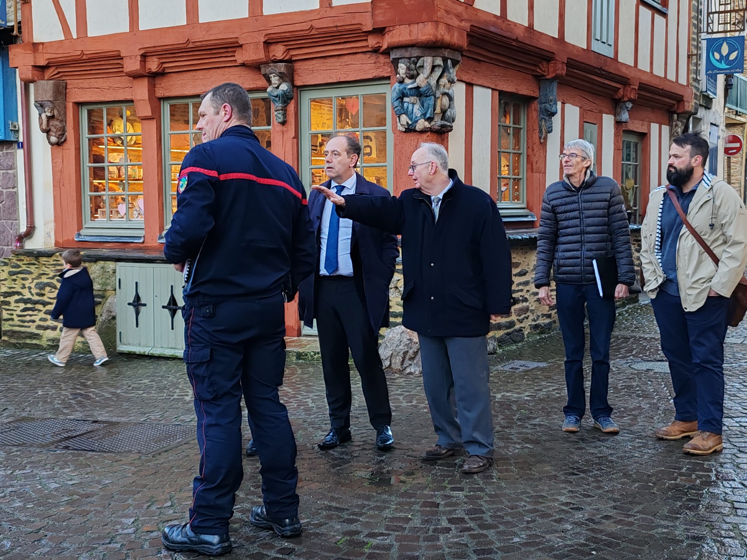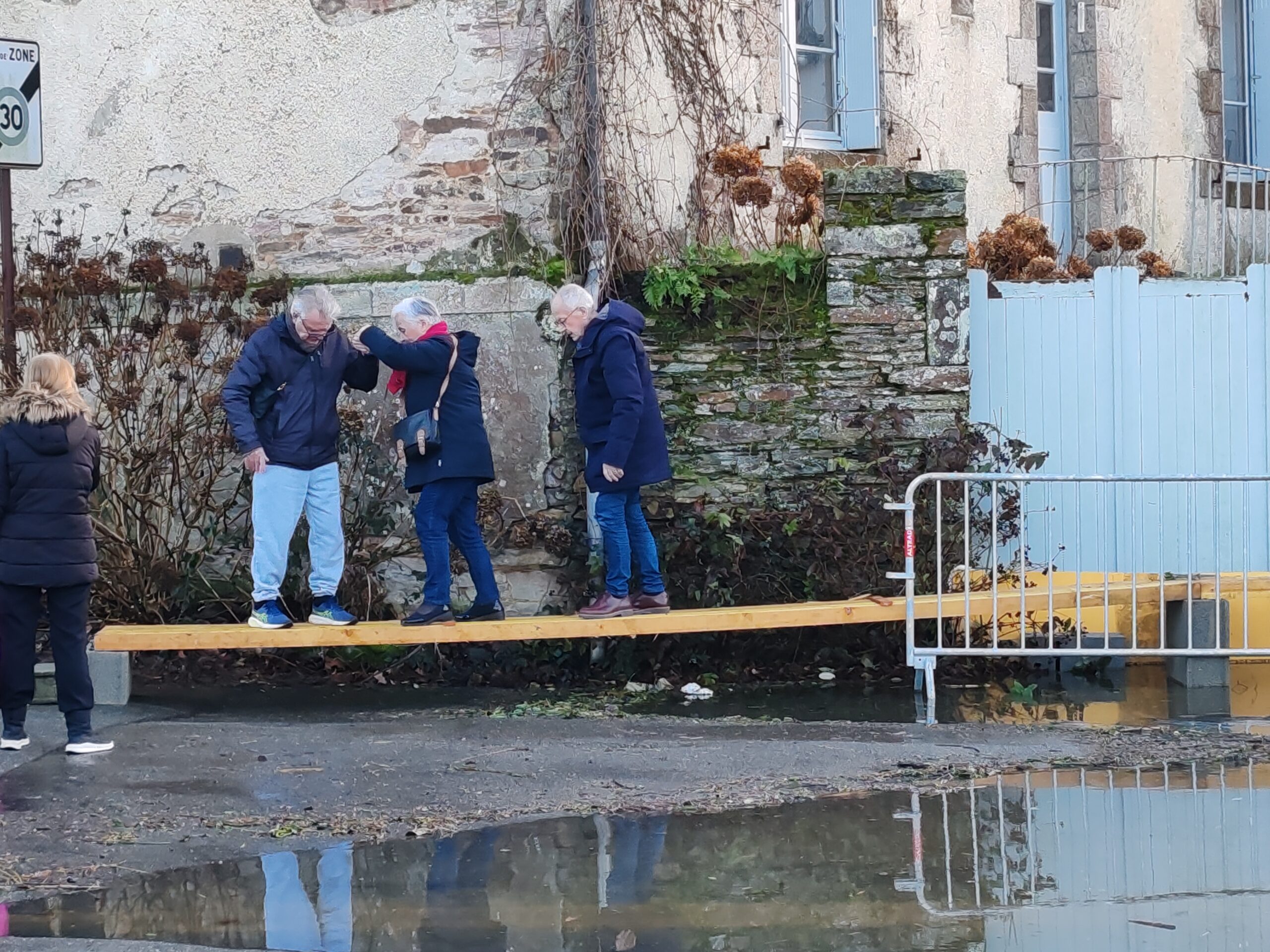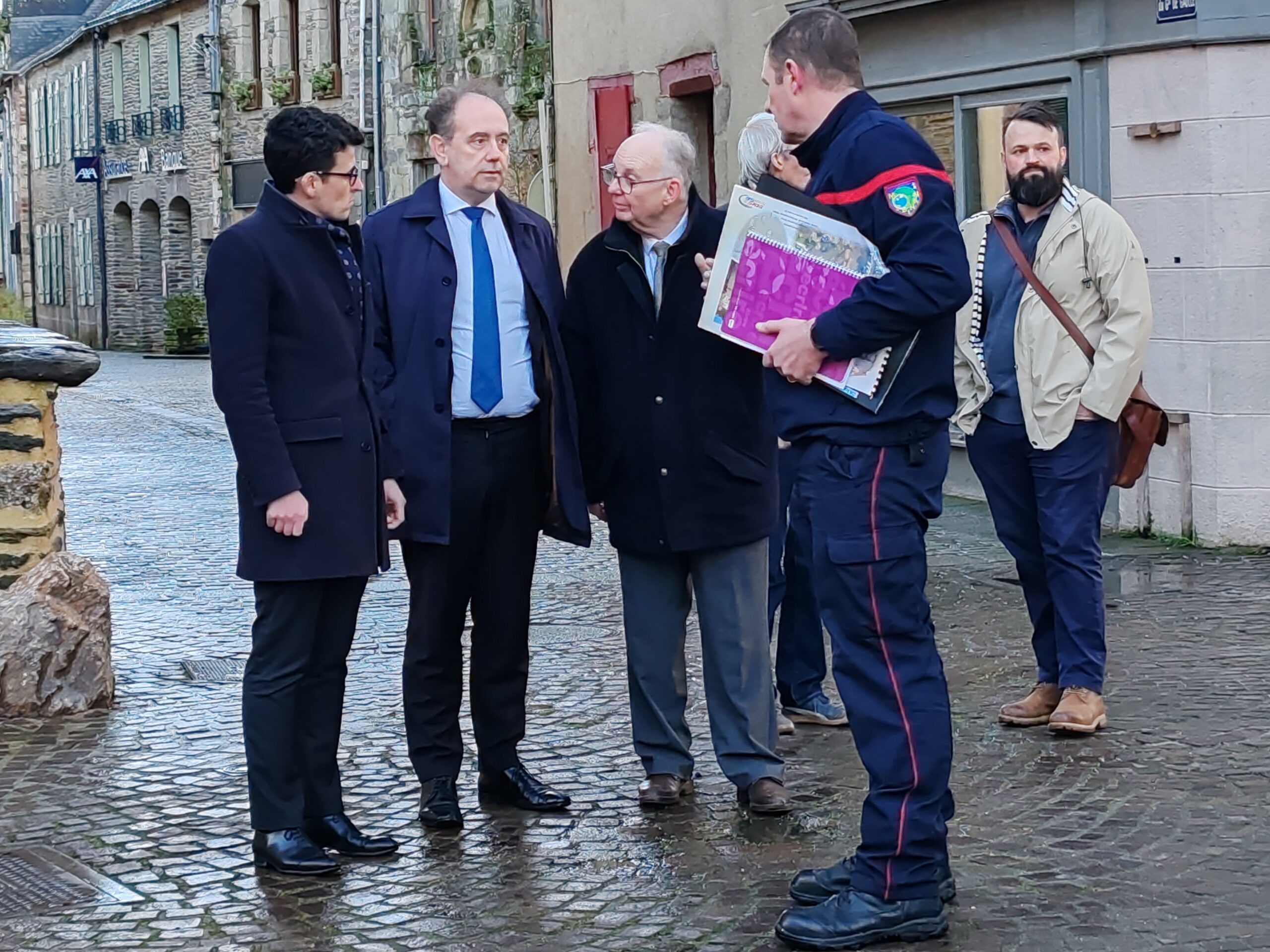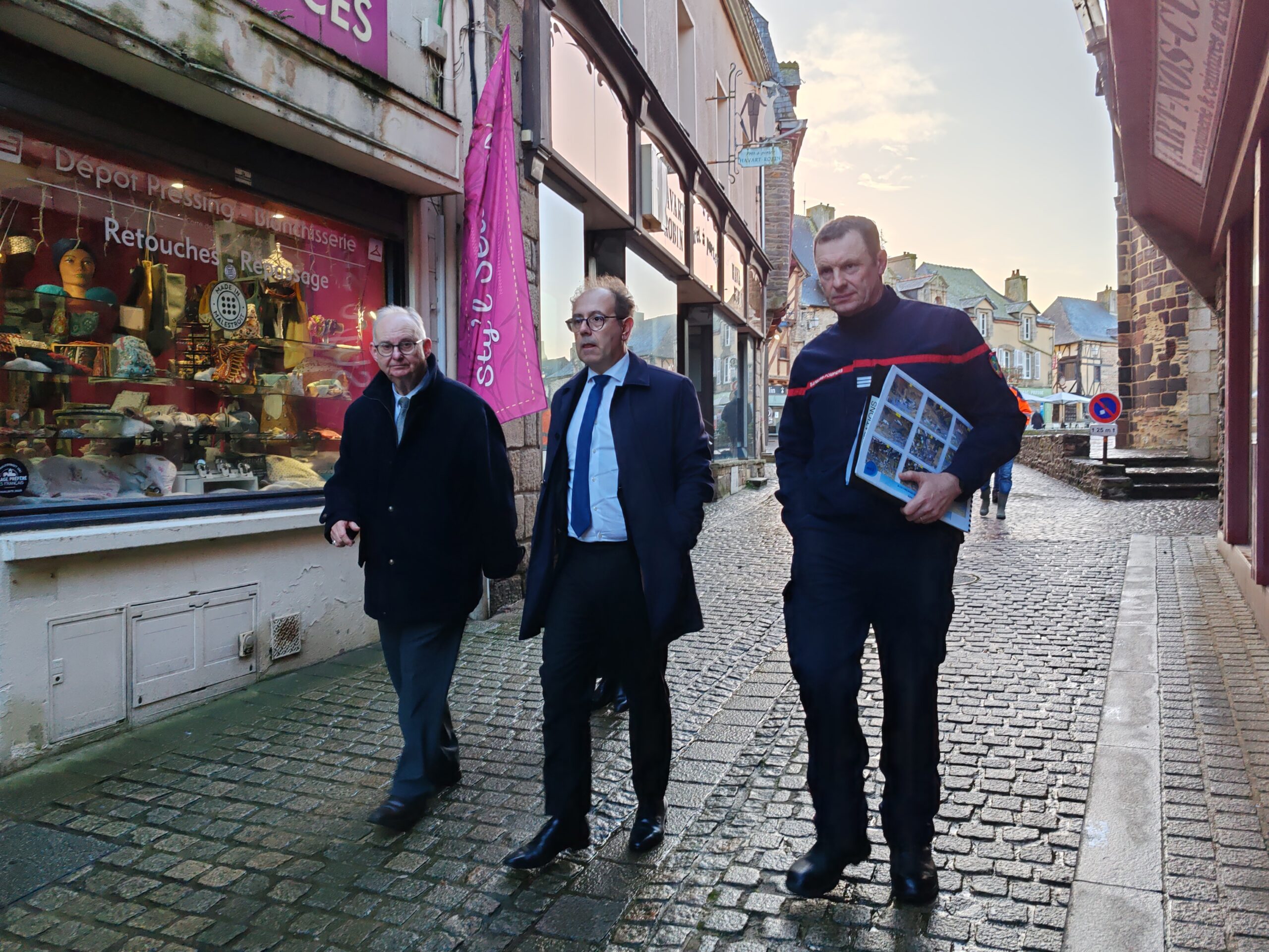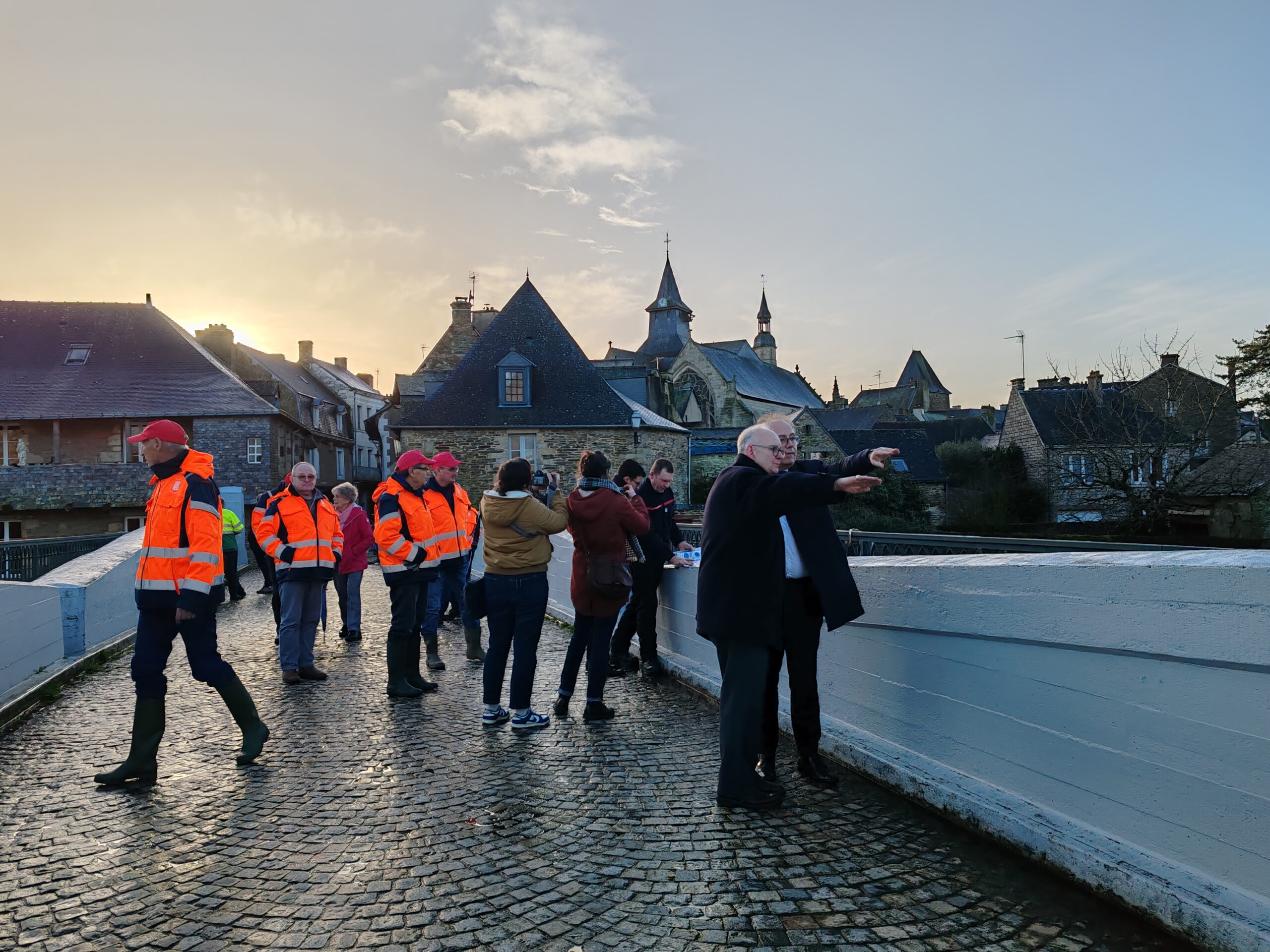 Le préfet du Morbihan, Michaël Galy est venu ce jeudi après-midi à Malestroit, prendre la mesure de la situation liée aux inondations consécutives aux fortes pluies qui se sont abattues sur le territoire ces derniers jours. Ce matin, Bruno Gicquello, le maire de Malestroit a activé le plan communal de sauvegarde et mobilisé la réserve communale de sécurité. Un certain nombre de mesures ont été prises dans la journée pour faire face à la montée des eaux. C’est notamment l’interdiction d’utiliser les terrains du complexe sportif mais aussi le parking de la salle des fêtes qui est sous les eaux. Un cheminement sur des bastaings posés sur des parpaings a été installé pour permettre aux habitants de la résidence riveraine de l’Oust place Bonsergent de sortir et de rentrer chez eux.