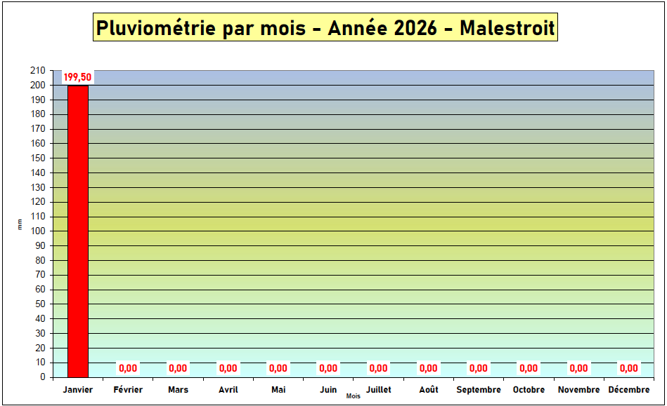 « Le mois de janvier 2026 cumule à ce jour 199,50 mm. A noter qu’il est tombé 107 mm depuis le lundi 19 janvier. Il faut se rappeler que le mois de janvier 2025 avait été aussi très arrosé avec un total de 266,50 mm », constate-t-il. Un chiffre à mettre en perspective avec la moyenne pour un mois de janvier depuis 1996 qui est de 108 mm! Le bilan final du mois de janvier sera encore exceptionnel. « Les prévisions météorologiques annoncent encore près de 50 mm pour la semaine prochaine », ajoute Franck Plisson.