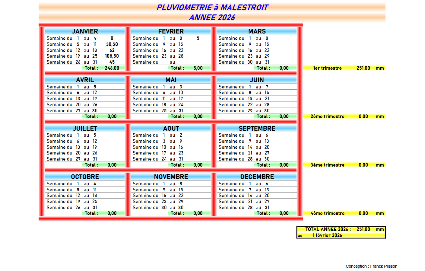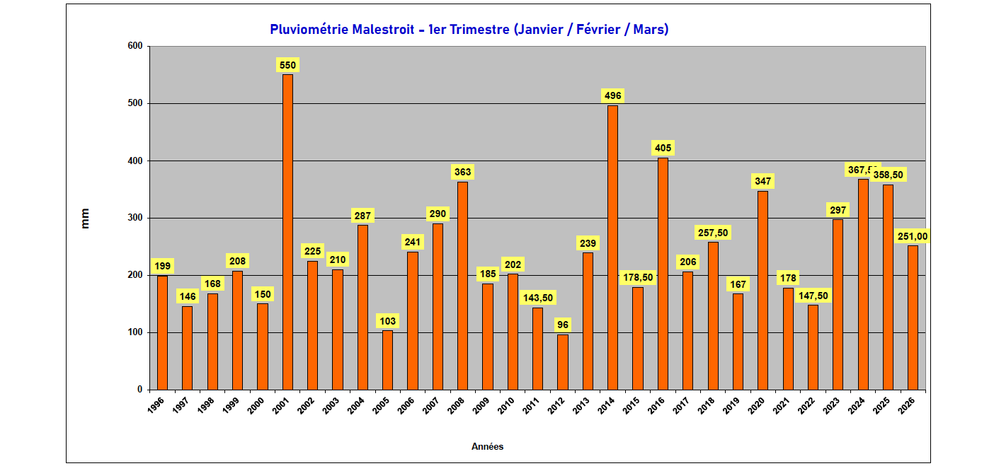 Le 1er trimestre 2026 atteint déjà 251 mm alors que sa moyenne est de 247 mm depuis 1996.