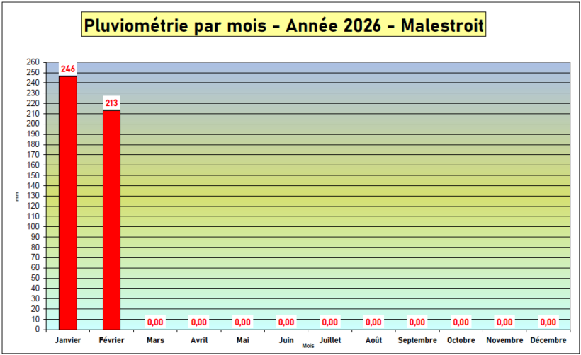 Cela ne surprendra personne. Mais les chiffres relevés par Franck Plisson sont là pour le confirmer : le mois de février 2026 est le 2è plus pluvieux après février 2014 depuis 30 ans. « La moyenne pour un mois de février est de 83 mm, celui de 2026 cumule 213 mm. Il arrive en 2ème position derrière 2014 – une année qui avait aussi connu de fortes inondations », analyse-t-il