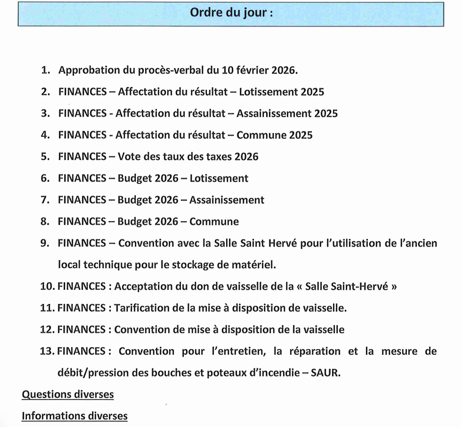 Caro. L’ordre du jour du conseil municipal