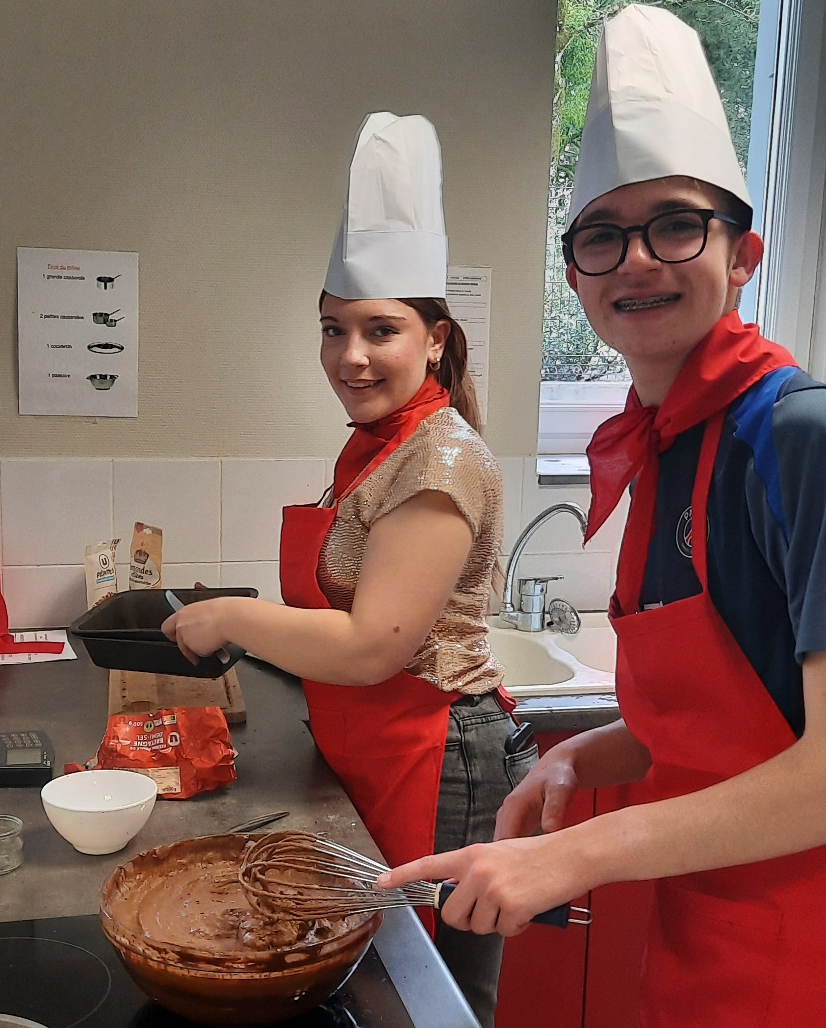 Dès le début de la semaine, les jeunes de l’IME ont été accueillis au lycée. Au programme : activités pour faire connaissance, constitution d’équipes représentant des régions de France et choix des recettes et du thème…