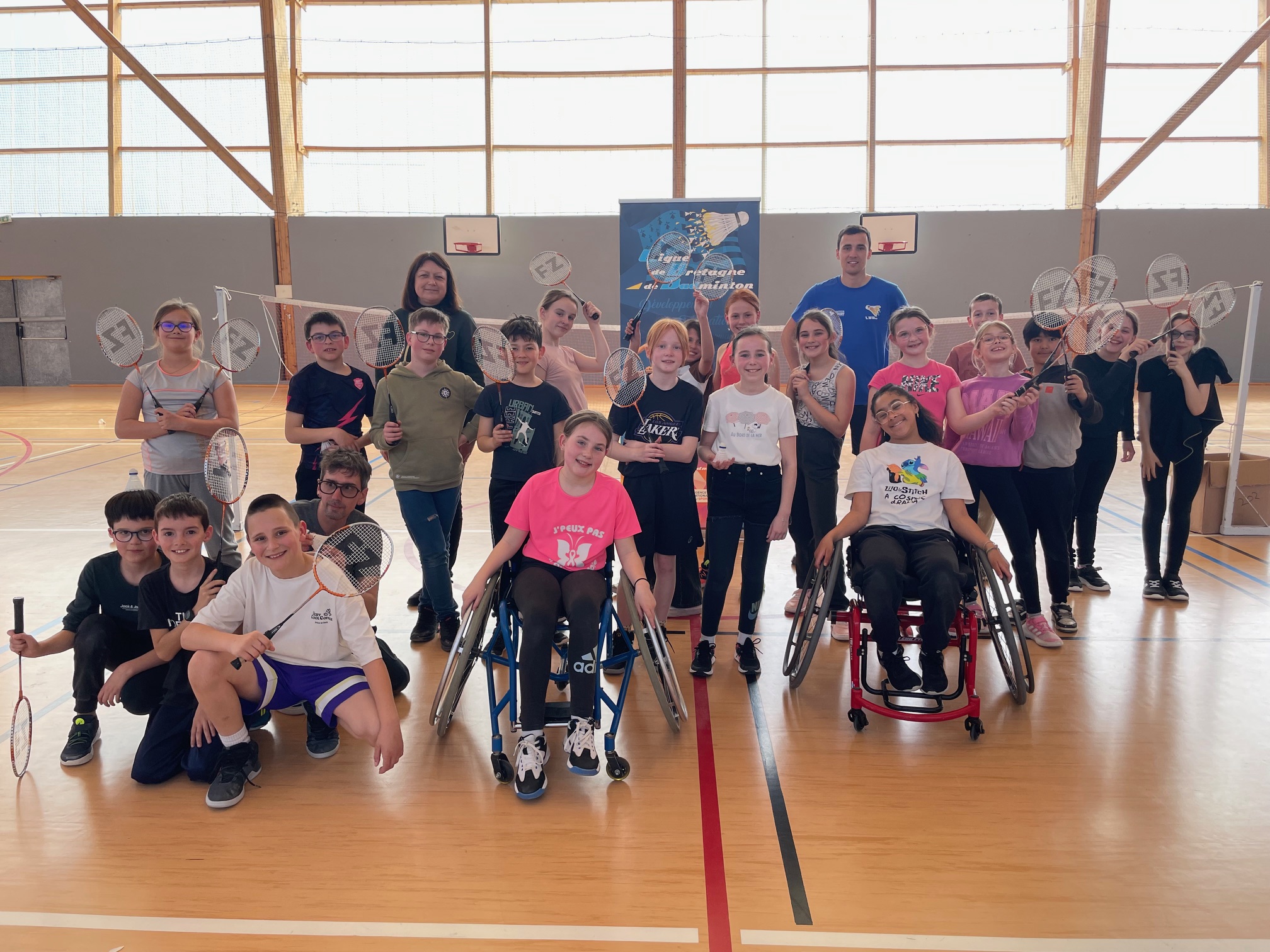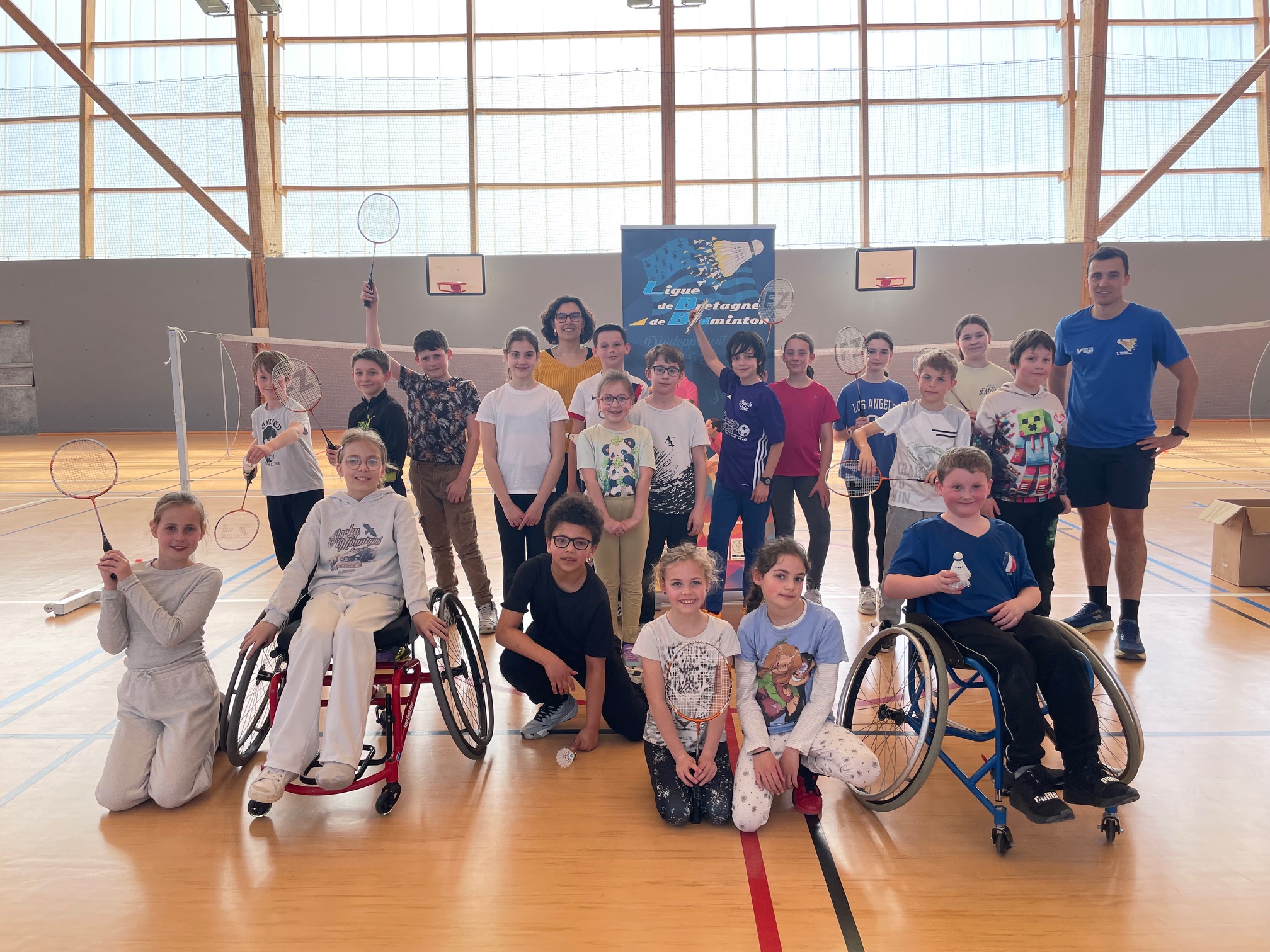 Cette année, une intervention originale est venue enrichir le programme : la Ligue de Bretagne de Badminton a proposé un atelier de découverte du badminton et du parabadminton à destination des classes de CM1 et CM2. Une initiative qui a permis aux élèves de découvrir une discipline accessible à tous, mais aussi de porter un regard nouveau sur le handicap dans le sport.