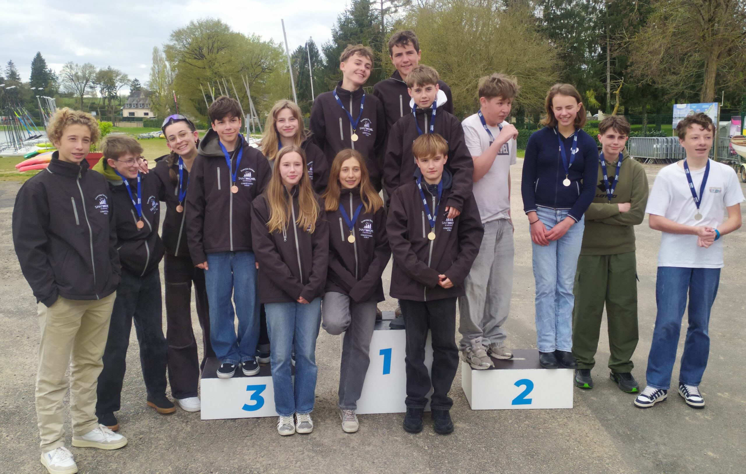 Ce mercredi 1er avril, les élèves de 7 collèges du Morbihan se sont retrouvés au club nautique Ploërmel – Brocéliande pour le championnat départemental UNSS de voile. les concurrents étaient répartis en catégorie excellence (collège Beaumanoir – Ploërmel (2 équipages), collège Korrigans – Carnac (1 équipage), collège St Michel – Carnac (2 équipages), collège La Rivière – Etel (2 équipages)) et en catégorie établissement (collège Sacré Coeur – Ploërmel (2 équipages), collège de Rhuys – Sarzeau (1 équipage) et collège Beg er Vil – Quiberon (1 équipage)