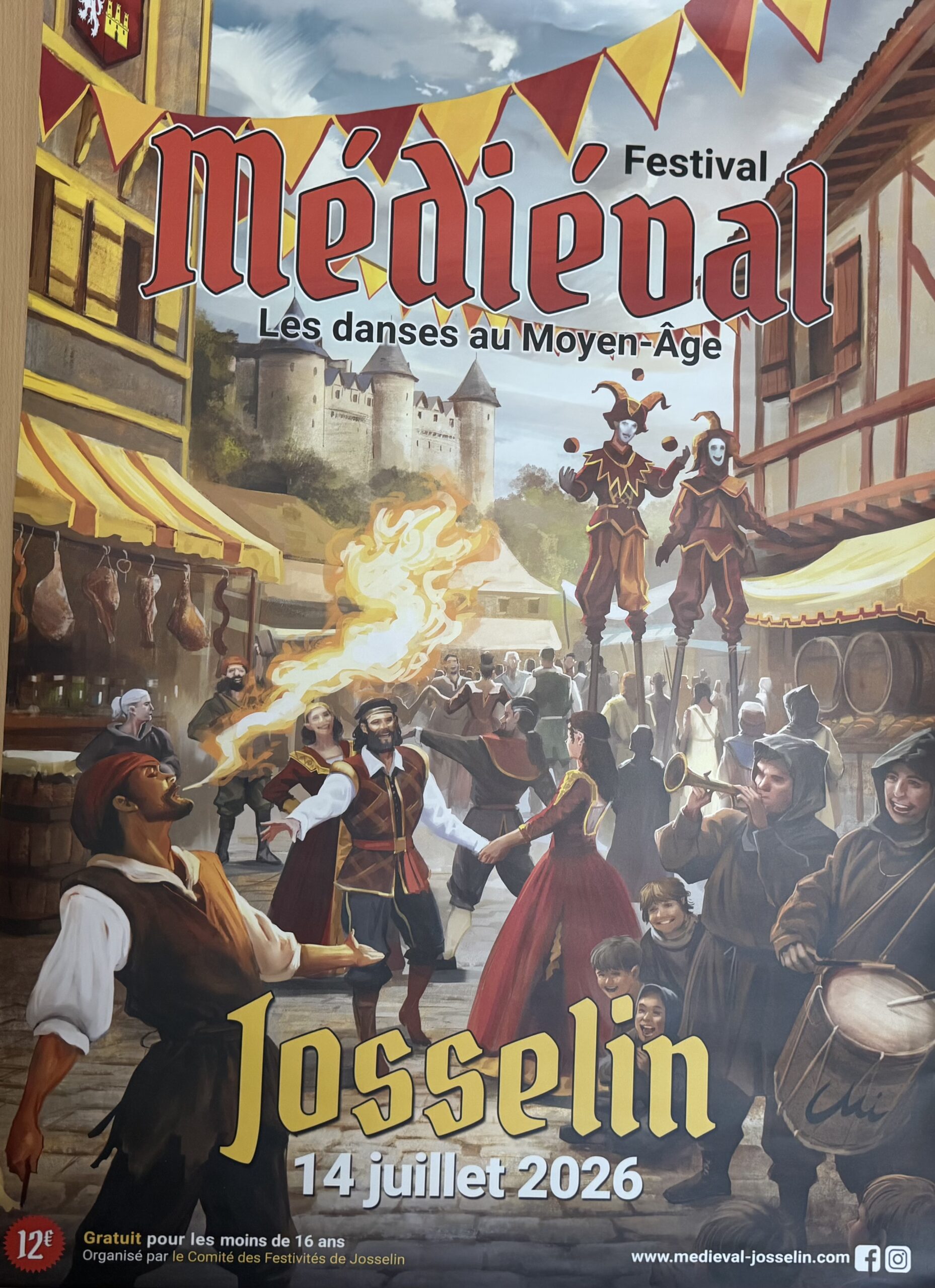 Le temps d’une journée, Josselin s’apprête à basculer plusieurs siècles en arrière. Le mardi 14 juillet, la cité de caractère vibrera au rythme du Festival médiéval, un rendez-vous désormais incontournable qui promet, une fois encore, une immersion totale dans l’univers du Moyen Âge. Cette édition 2026 aura pour thème « les danses au Moyen-Age ». Cette année, confronté à la hausse de l’inflation et des charges, les responsables du comité des festivités de Josselin ont décidé d’augmenter le prix d’entrée qui passe de 10 à 12 euros, mais l’entrée reste gratuite pour les enfants de moins de 16 ans et pour tous les visiteurs qui se présenteront en costumes d’époque. Comme à chaque édition, le comité des festivités propose de louer des costumes qui sont confectionnés par les bénévoles. La présentation de cette édition 2026 a aussi été l’occasion pour les dirigeants d’en présenter l’affiche, qui a été réalisée par un nouveau dessinateur, Miguel Coimbra. On y retrouve tous les symboles de cette édition : le château, un décor qui évoque le quartier Sainte-Croix et la danse…