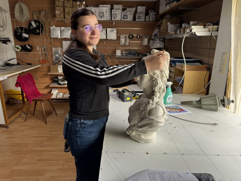 En attendant la quête de son chef-d’œuvre, Élise s’entraîne au sein de l’entreprise familiale et s’est vu confier une première mission passionnante. La municipalité de Caro, à la recherche d’un buste de Marianne, a contacté Bretagne Staff Diffusion pour le réaliser.