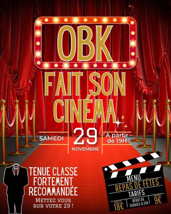 Après la projection, changement d’ambiance : place au glamour. Le comité des fêtes propose un repas festif et animé, pensé comme une véritable soirée de gala. Décoration soignée, menu de fête et animations ponctueront la soirée, avec une consigne donnée aux participants : venir élégamment vêtus. De quoi garantir une atmosphère “tapis rouge” du plus bel effet.