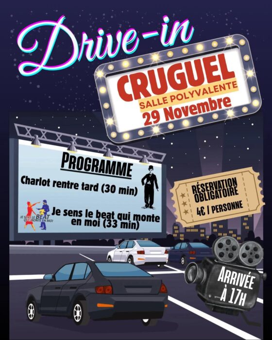 Le comité des fêtes de Cruguel prépare un rendez-vous aussi festif qu’original, vendredi 29 novembre, avec une soirée entièrement dédiée au 7ᵉ art. Au programme : une projection en Drive In au coucher du jour, suivie d’un repas animé dans une ambiance de gala. Deux atmosphères, un même fil rouge : célébrer le cinéma autrement.