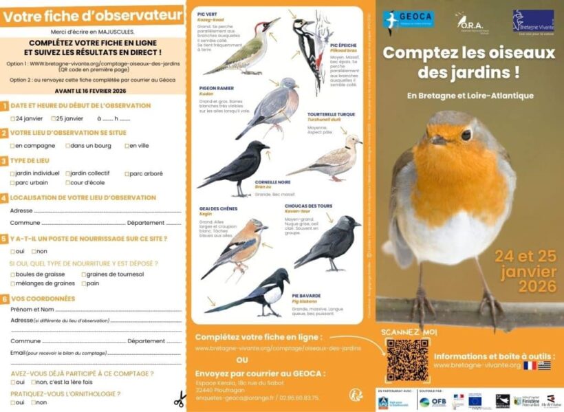 Pour chaque espèce, notez seulement le nombre maximal d’oiseaux observés en même temps. Si vous voyez 3 mésanges bleues, puis 2, puis 4, vous noterez 4 mésanges bleues,